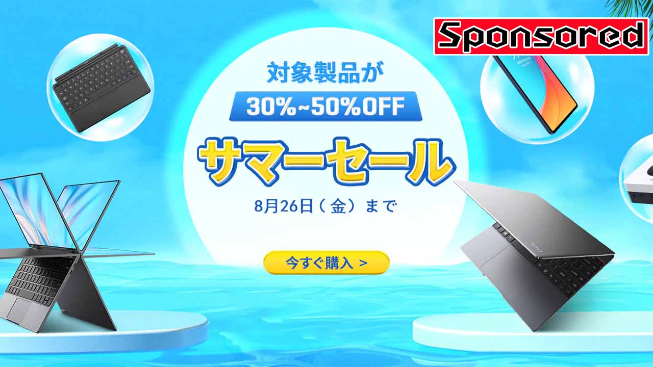 PC、タブレットを手掛けるCHUWIが公式ストアでサマーセールを開催中!最大50%オフとなっており定価より安く手に入ります。ライトユース用途のPCや動画視聴用タブレットなど欲しい方は是非ともどうぞ!