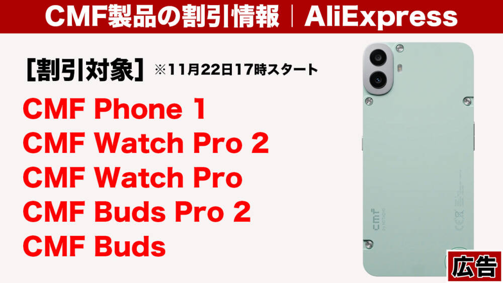 CMF Phone 1やWatch Pro 2など5機種がアリエクのBFセールに登場!