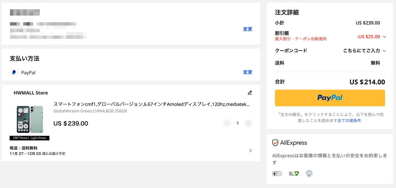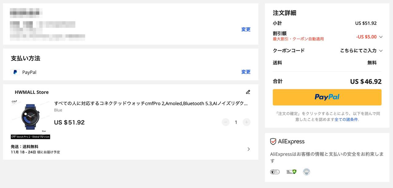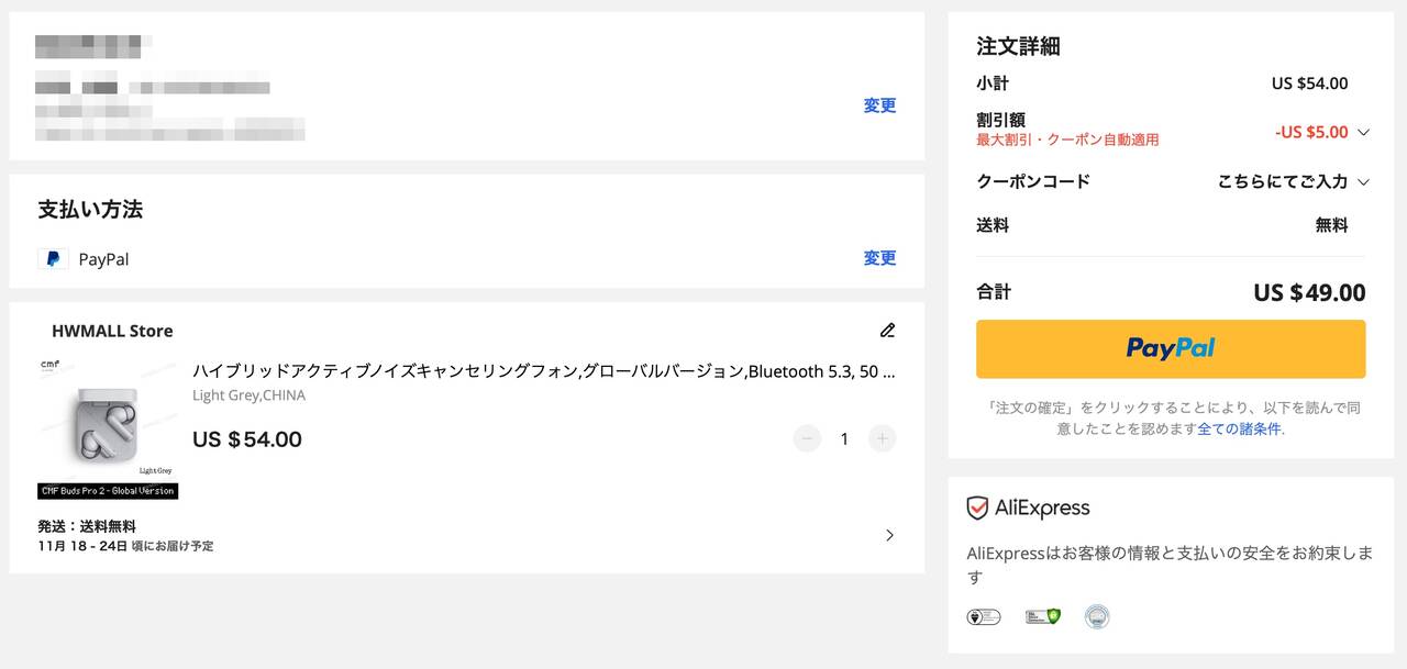 AliExpressのセールでは価格がリアルタイムで変動します。必ず最終価格を確認してから決済するように!
