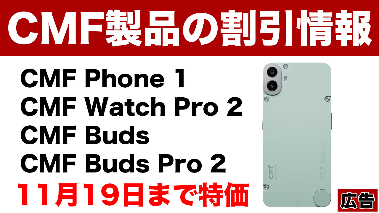 CMF Phone 1やWatch Pro 2などCMF製品が11月19日までセールでお得になってますよ!