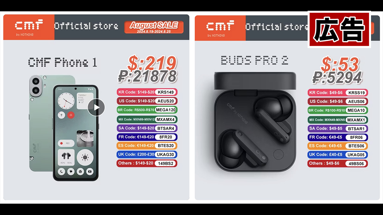 個性的かつ機能的デザインで超話題となった最新スマホ「CMF Phone 1」、そしてハイコスパなイヤホンと注目された最新イヤホン「CMF Buds Pro 2」がAliExpressのセールで安くなるぞ!気になっていた人は是非チェックしてみてくれ!