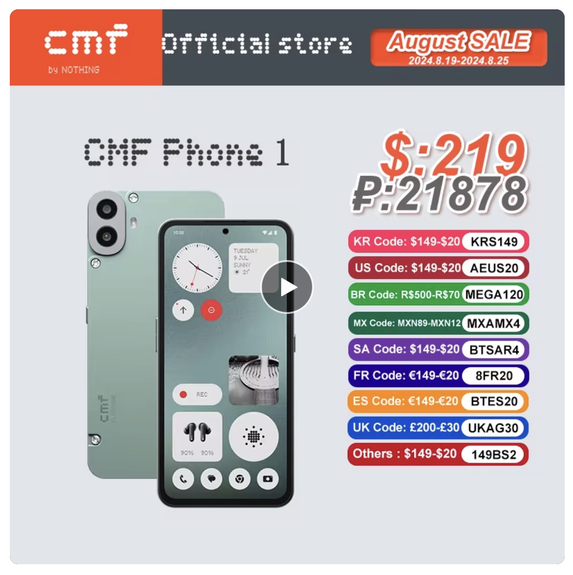 そんなCMF Phone 1だが、今回のセールではたぶん239ドルになる。いや、さっきの画像を見ると219ドルになるっぽいが、資料では239ドルだ239ドル。なので239ドルである。