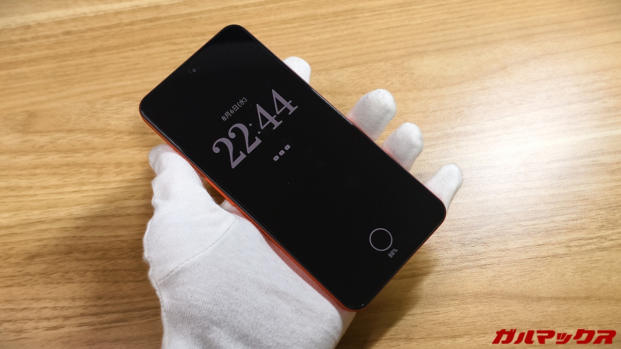 ▼廉価ブランドのモデルながら地味に画面内指紋センサーも内蔵しているのが嬉しい。位置的には結構下部寄りなんで、筆者的には目視せずとも使いやすい。ただ低すぎることによる安定性のなさはネックです。軽いからそれほど気にはならんけど。↓