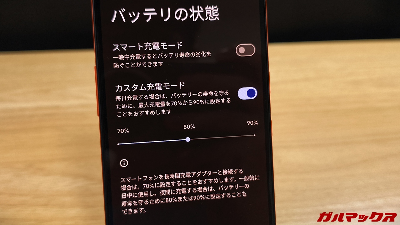 ▼充電は最大33Wと凡庸クラスで速さも特筆すべき点はなし。ただし充電保護機能に対応しており、最大70、80、90%のいずれかまで充電を止めることでバッテリーの劣化を抑える事ができます。これあるのありがたい。↓