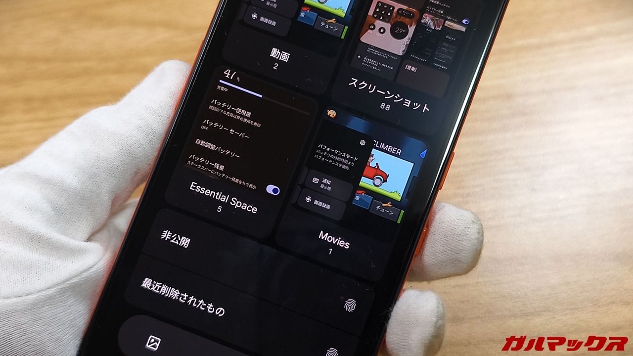▼こいつは1回押すと即座にスクショするんですが、その際にメモ書きも残すことができます。また通常のスクショフォルダではなく、Essential Spaceというフォルダに分けられ保存されます。↓