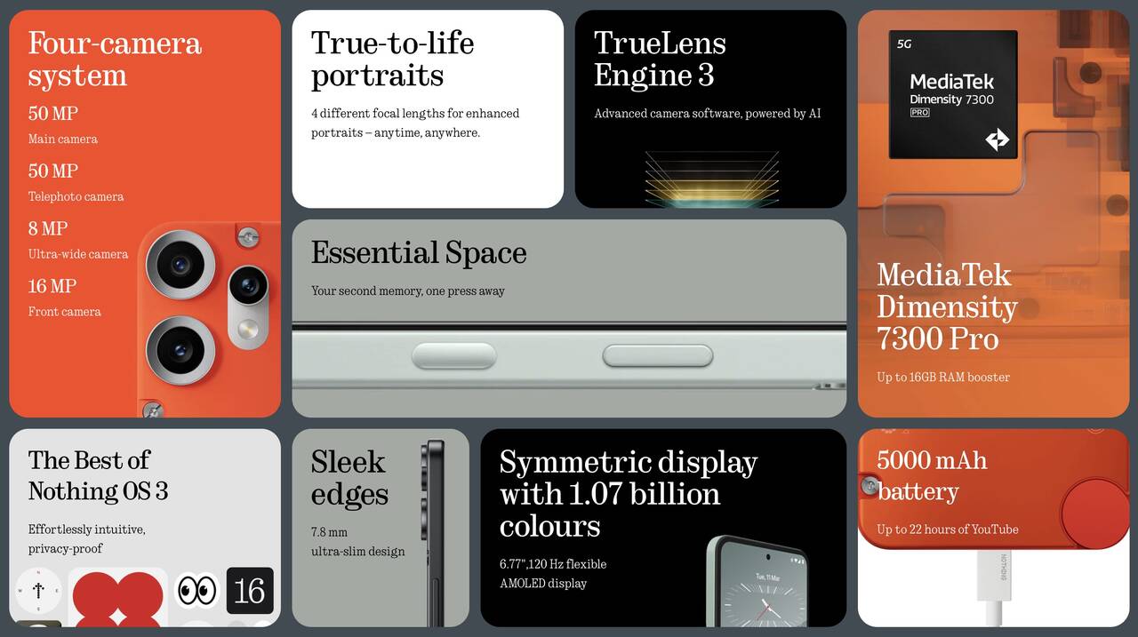 OSはAndroid 15ベースのNothing OS 3.2を搭載!