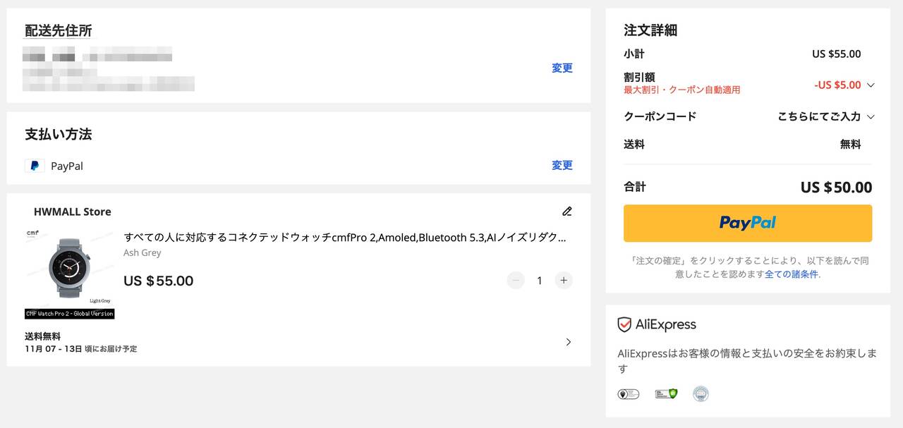 11,000円でも機能やデザインを考えるとかなり頑張っている価格だと思いますが、AliExpressでは割引クーポンを適用することで、なんと50ドルに。日本円に換算すると約7,600円という価格で手に入ります。