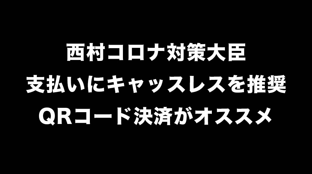 この放送の中で西村大臣は1つの感染防止対策として「キャッシュレス決済」を促しています。キャッシュレスならお金を触ることもなくお釣りを受け取ることもありません。
