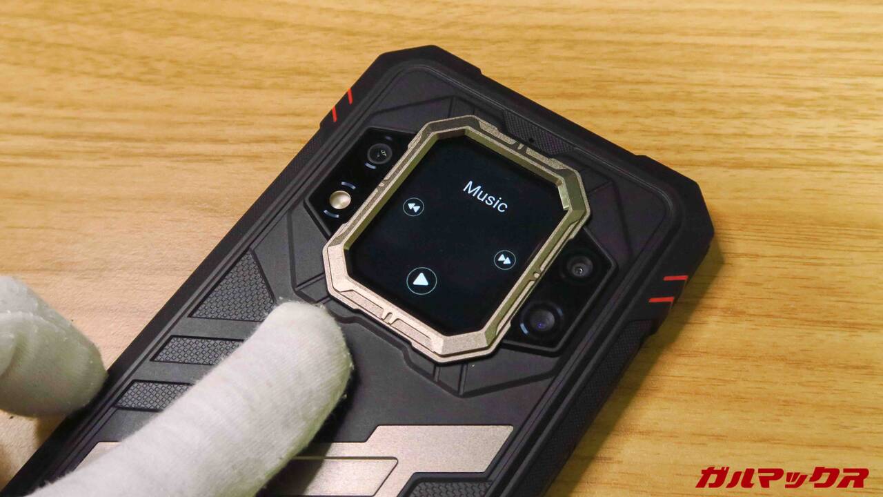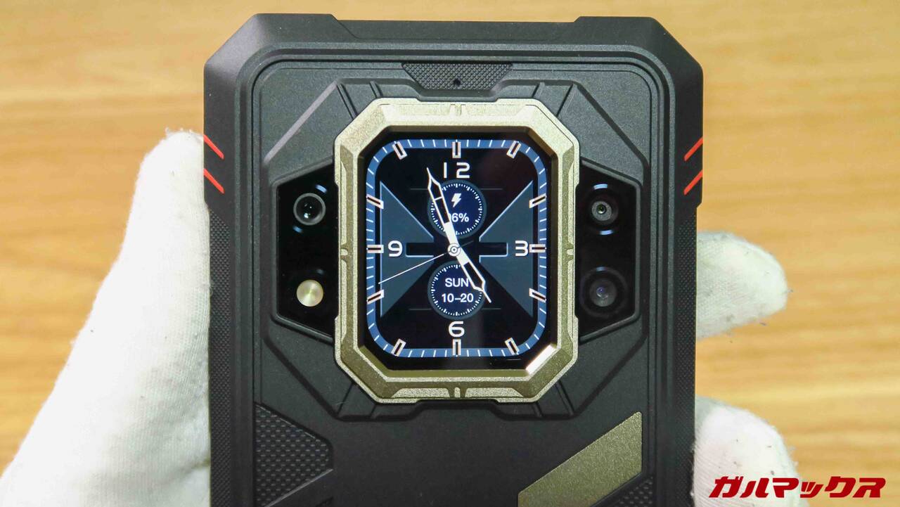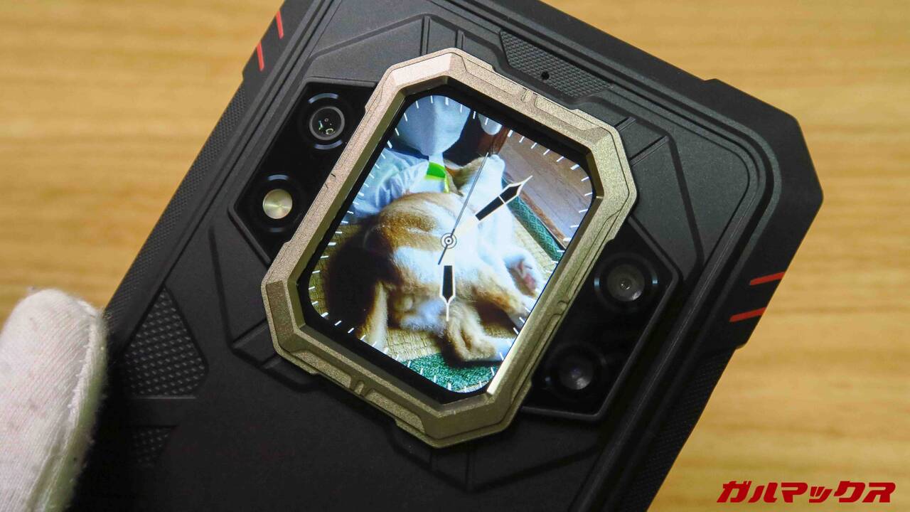 タッチで画面切り替え、壁紙変更も可能です。見た目の個性はかなりのもんです。少なくともタフネス自体普通に見かけることさえ稀なのに、背面画面搭載スマホとなれば二度見されること請け合いでしょう。