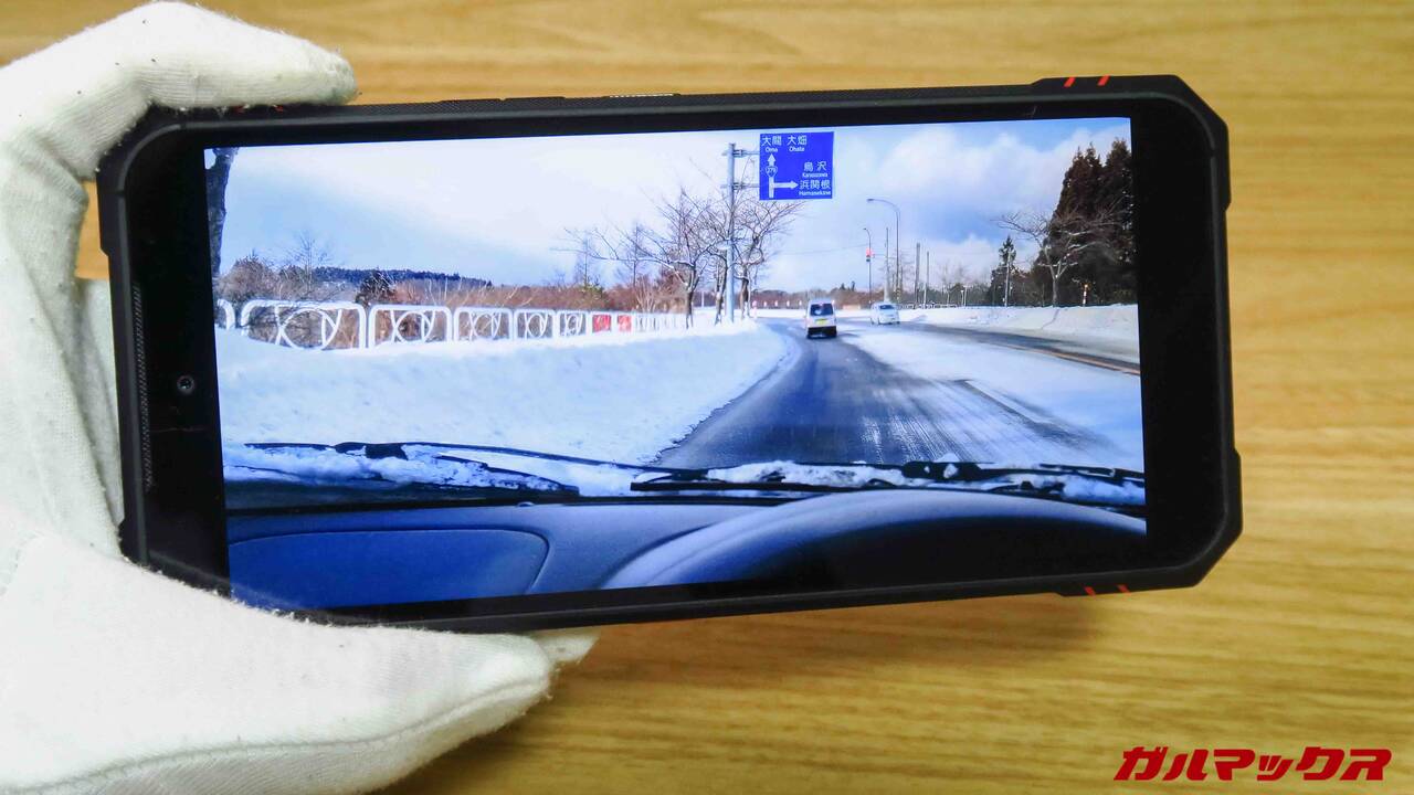 ▼サイズもデカいので動画視聴もなかなか没入できます。画像は筆者の愛車ヴィッツでの青森ドライブ動画。思い出に耽るにも良い‥この後スタックした苦い思い出。↓