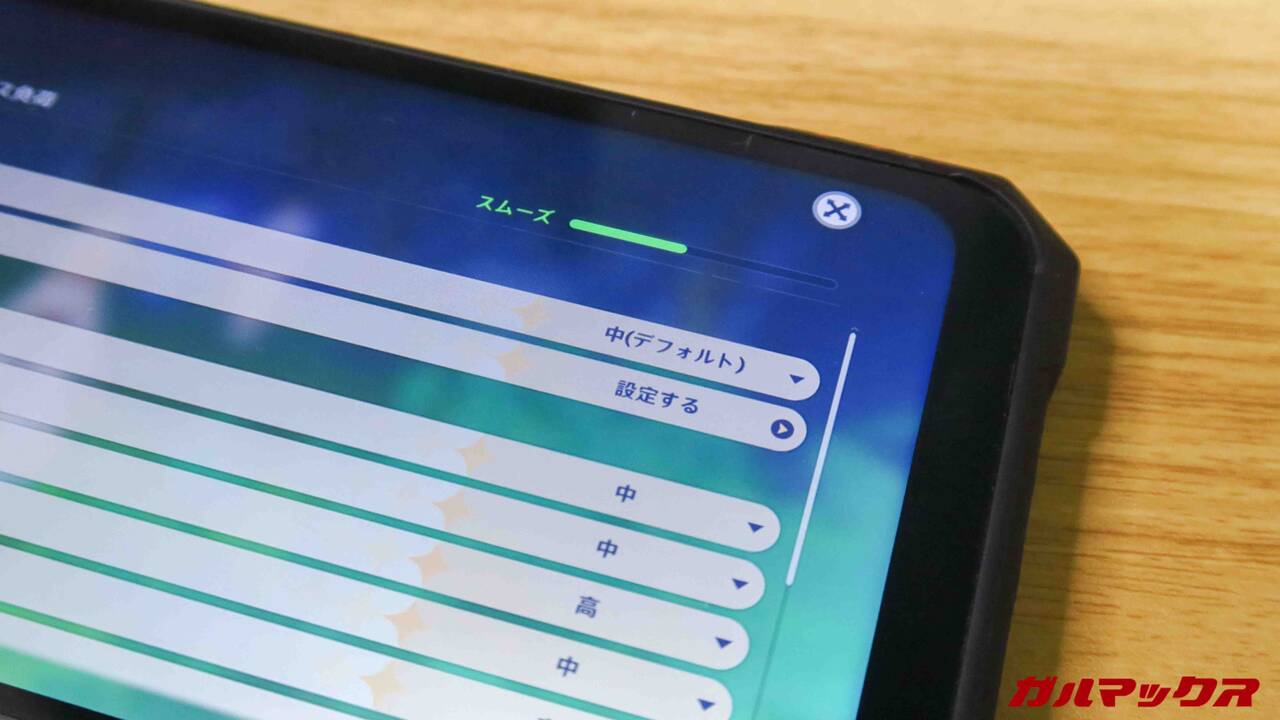 一方で3Dゲームはどうなのか?これも結構遊べます。AnTuTu90万点クラスともなれば原神はじめ重たい3Dゲームも割と遊べるんですよ。タフネススマホでは考えられん‥
