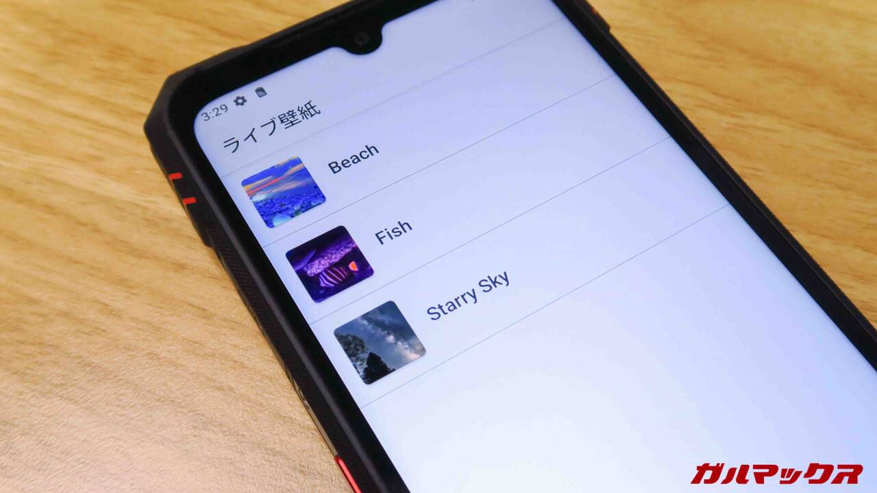 少し面白いポイントとしてライブ壁紙がデフォルトで入っていました。ノーマルのAndroidOSではなかなかプリインされていないため珍しいと感じられるポイント。
