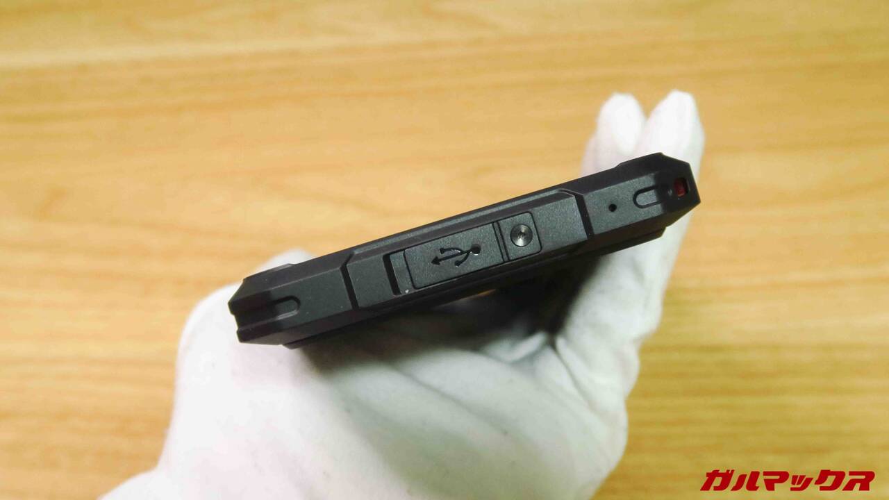 イヤホンジャック端子は非搭載で、この点はタフネススマホではよくあること。しかしスピーカーはモノラルタイプ。高スペックなだけにもったいないとは思えます。ミドルレンジスマホでもデュアルスピーカー搭載が多かっただけに意外でした。