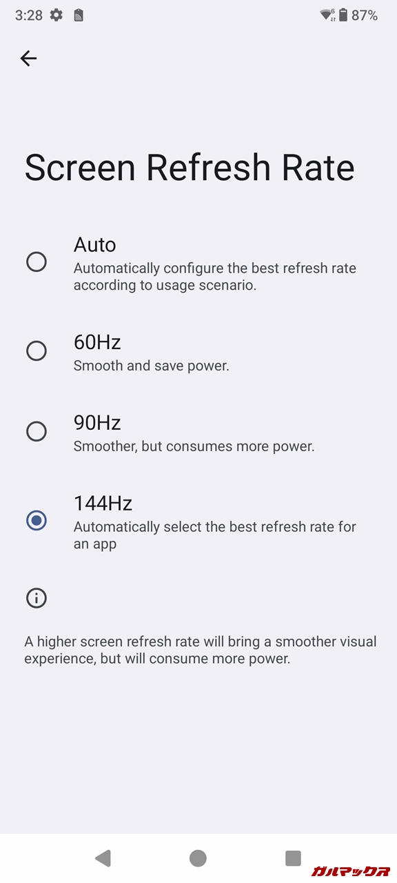 ただし144Hzで背面ディスプレイの輝度を高くしたりライブ壁紙にしたりなど、設定次第ではゴリゴリ削られるので注意です。