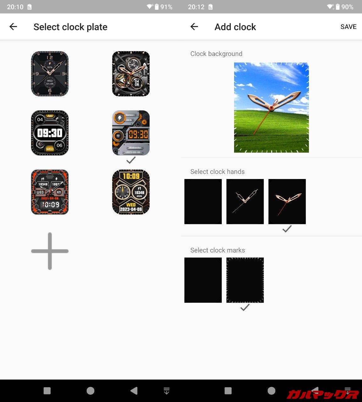 ▼時計表示はいくつかデザインが用意されているほか、背景は任意の写真を設定できるのでやろうと思えばボディデザインを独自に飾ったりもできます。↓