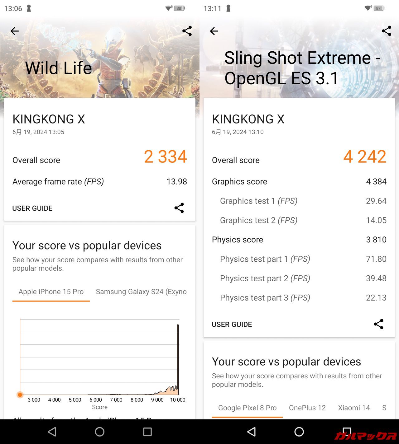 これまでミドルレンジSoCでは同様の検証で30FPSを下回ることが多かったんですが、KINGKONG Xではギリだけど上回っていました!!!