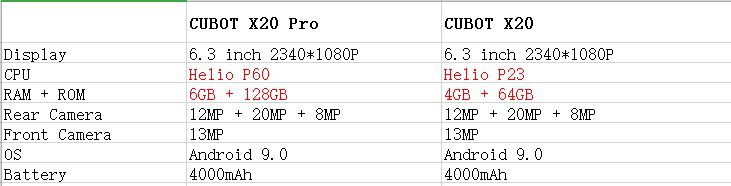CUBOT X20シリーズは2種類御座いまして、通常モデルがX20、上位モデルがX20 Proとなっております。
