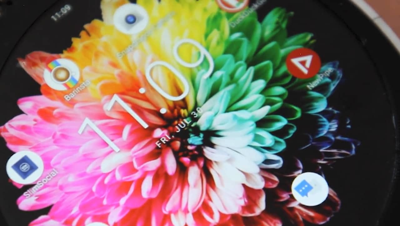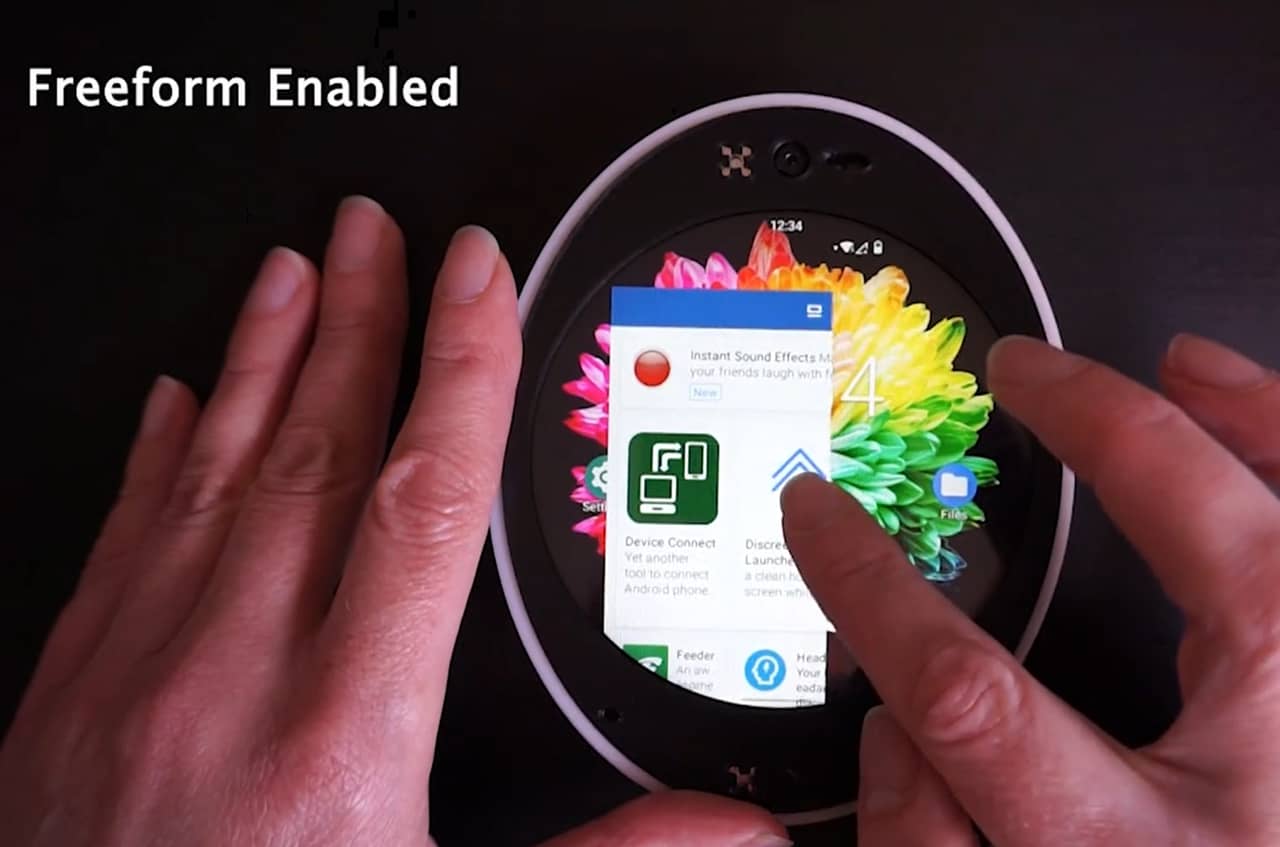ディスプレイは3.45インチで解像度は800×600。形状が完全に丸いので使い心地はどうなんだろうと思いましたが、Cyrcle Phone 4Gはフリーフォームウィンドウに対応!アプリの表示の大きさをパソコンみたいに変更できるようになっているんです!↓