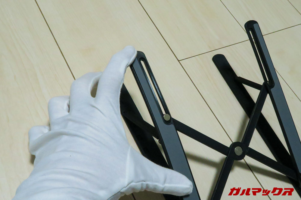 このスタンドは欠点らしい欠点は見当たらず、精々挙げたとすれば穴の内側は丸められていなかったため、指を通したときの感触はちょっと気になるぐらいです。痛くはないけどちょっと刺激的な感じ。