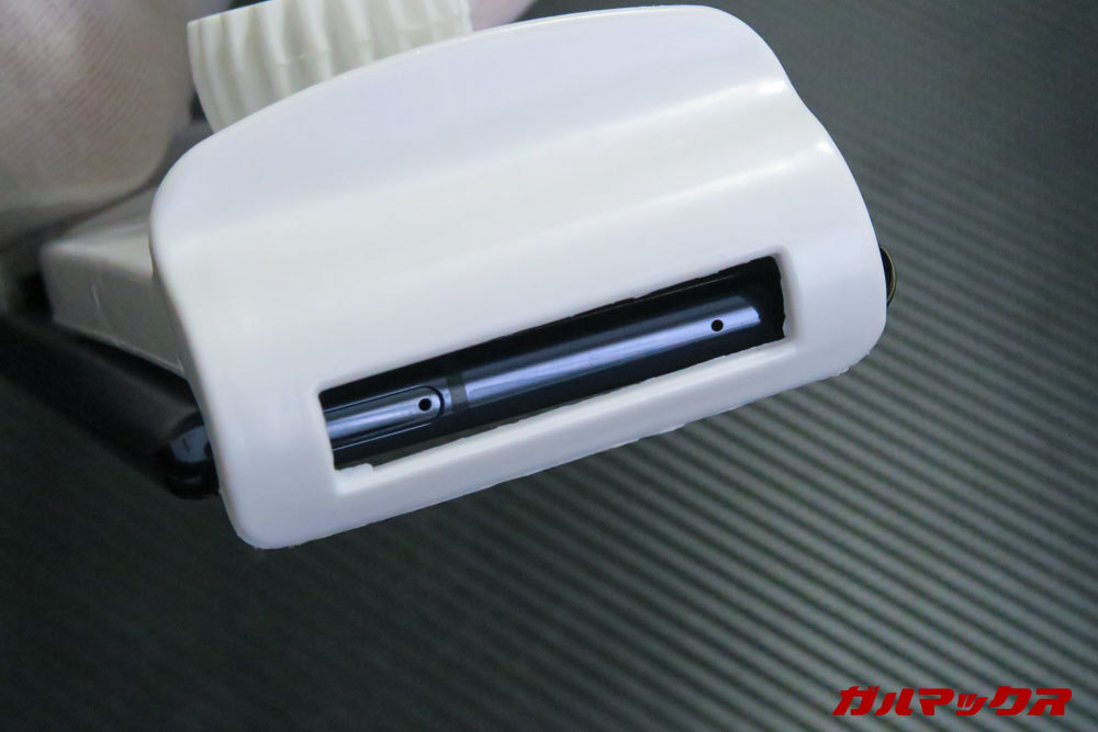 ▼ホルダー部分も薄手のクッションが入っており、スマホに傷がつきにくい設計となっているのが嬉しい!内部はバネ式らしく動かすと少しだけキーキー音は鳴るんですが使ってて気にはなりません。↓