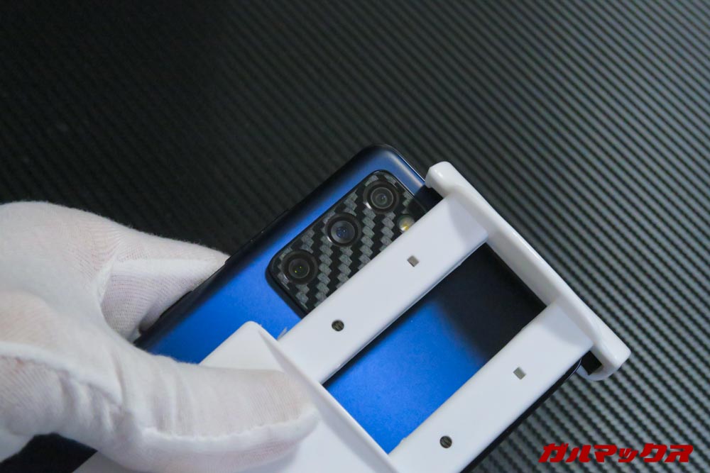 ▼欠点として、装着中はカメラとちょうどかぶってしまうんで使えないです。OnePlus 8とかXperia 1とか中央にカメラがあるようなスマホだったら多分行けるかも?持っていないので試したことないですが…↓