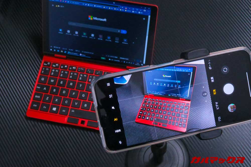 ▼ズラせばカメラは使えるんだけど、当然安定性が下がるんでこのままでは使えない…撮影時にのみズラす使い方になりますね。↓