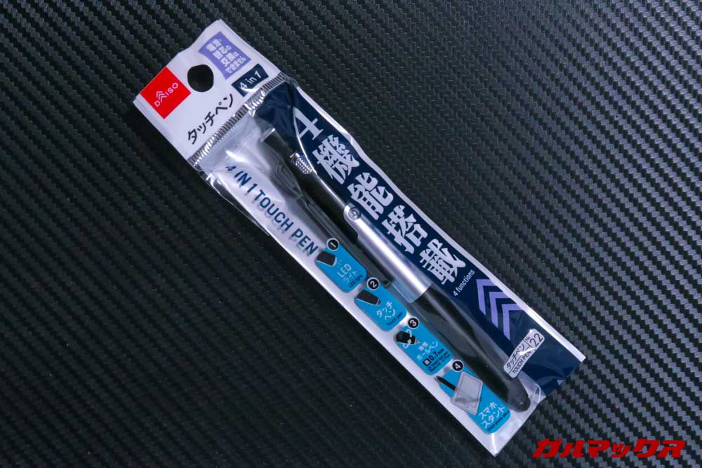▼こちらは多機能のタッチペン。「タッチペン」「ボールペン」「LEDライト」「スマホスタンド」の4役を担えるものになっております!ペンとタッチペンを両立できるものは見たことあるけど、さらにLEDライトとスタンド機能がついてて110円は美味しい!↓