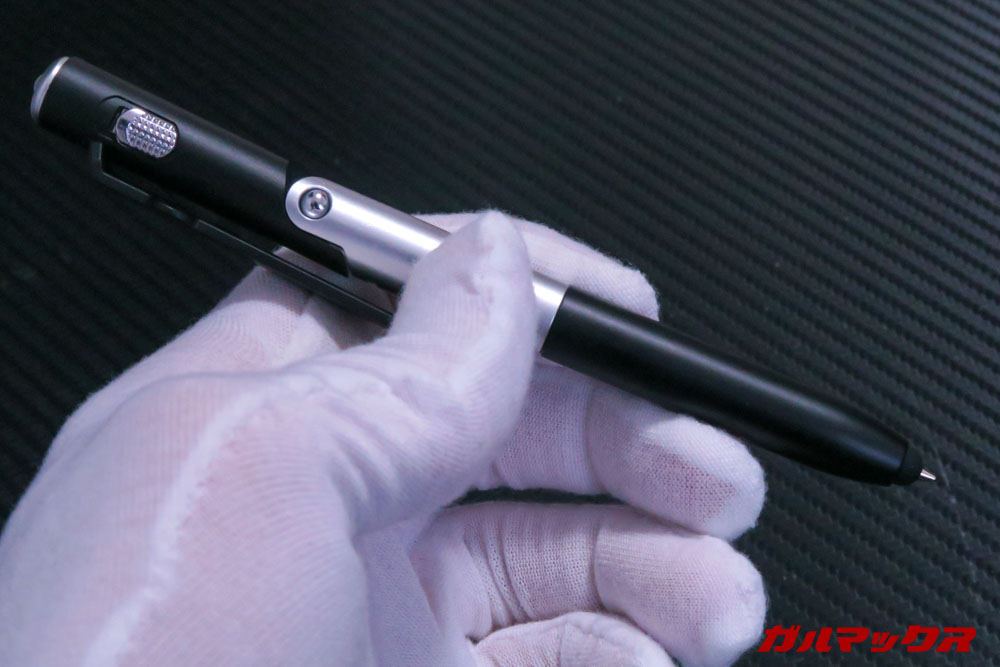 ▼タッチペン、ボールペンは持ち手部分をスピンさせて切替可能。書き心地も不満はありませんでした。↓