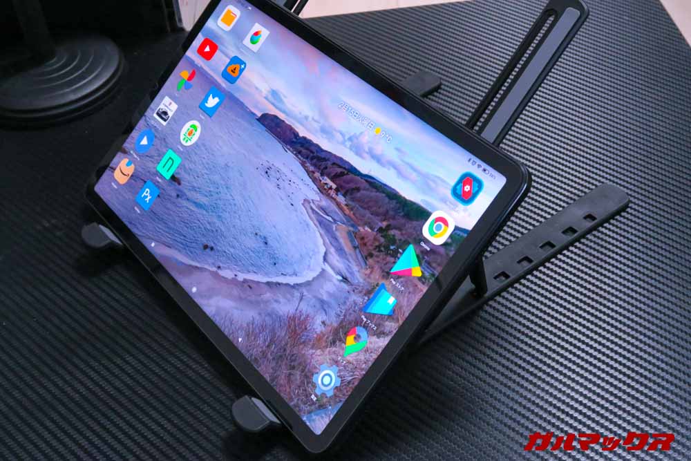 あとこのスタンド、挟まなくても立てかけられるため、タブレットも対応できるってのもナイスポイント!筆者はもう1つおかわりで買おうか悩んでます。