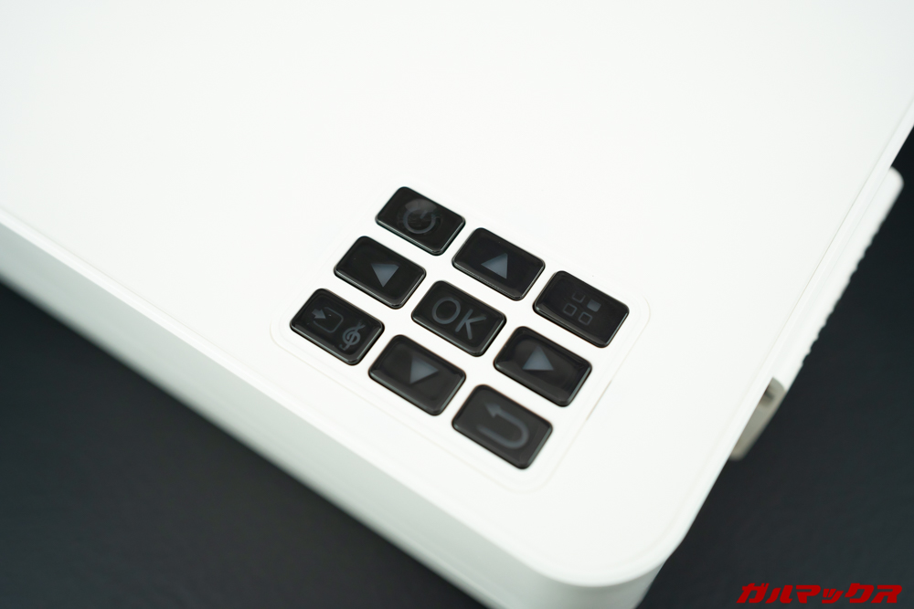 ▼本体にも操作ボタンが備わってるんでリモコンなくても直接操作できるっす。ちなみにこのボタン、電源入れると緑色に光るんで暗所でも操作しやすい。↓
