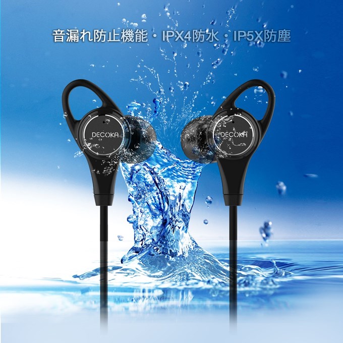 Decoka DK100は防水のIPX4に対応しているので、汗をかく運動時や雨天でも利用できる仕様となってました。