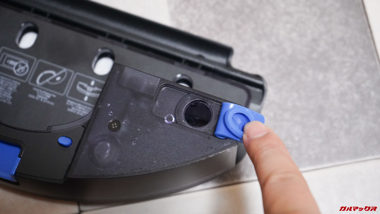▼水拭きに対応するユニットはモップが備わっていて水を入れるタンクが一体化しています。水を入れる穴はもう少し大きいほうが入れやすかったなと思いました。↓