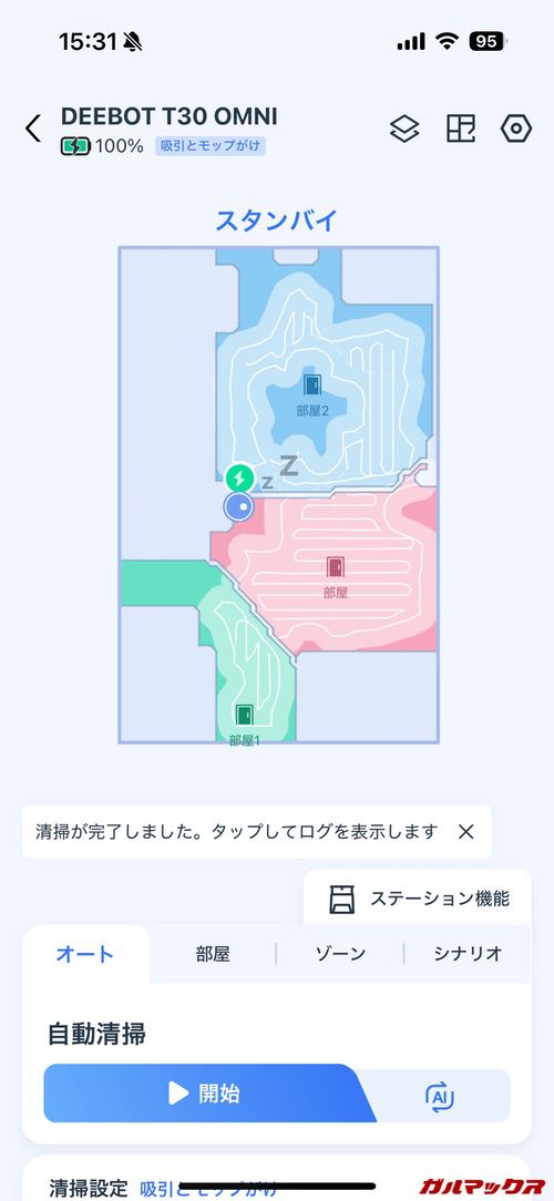 先述したワンタッチ操作の清掃はオートですが、アプリを使うと掃除する部屋を指定したり、設定した任意のゾーンだけを掃除するような掃除もOK。