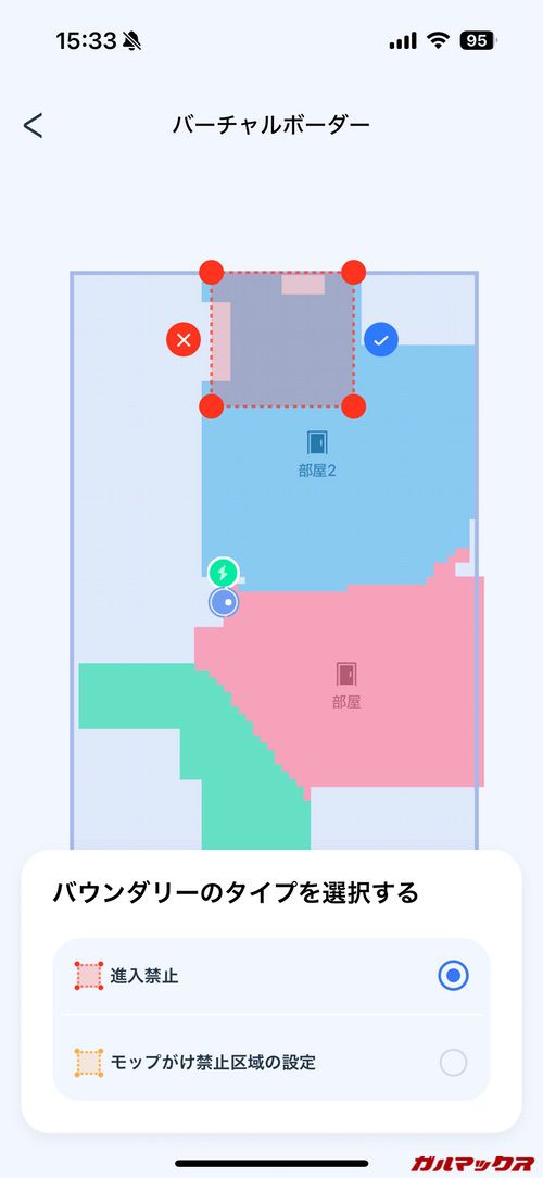 ▼マッピング後はバーチャルボーダー機能を使って進入禁止エリアの設定も可能です。↓