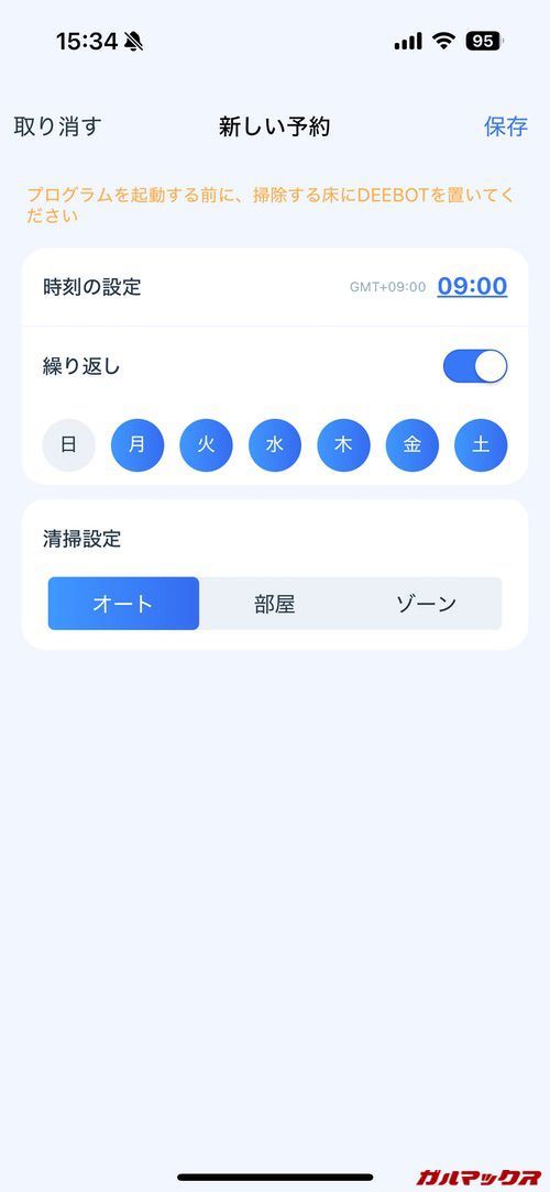 ▼もちろんスケジューリング清掃もOK。スケジュール設定ではオート以外に先述した部屋指定、ゾーン指定も選択できますよ。↓