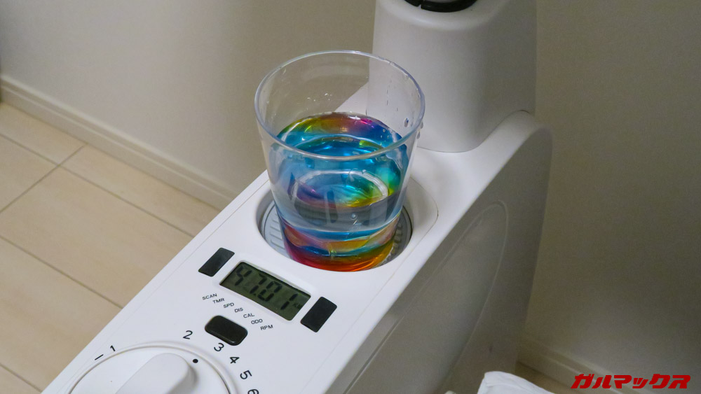 ▼注意点として、天板の下にはカップホルダーが付いていますが、めちゃくちゃ浅いので漕いでるときにうっかりヒザをコップに当てると100パー倒れてコップと飲み物がご臨終になります。丈夫な水筒やフタを閉めたペットボトルを使いましょう。↓