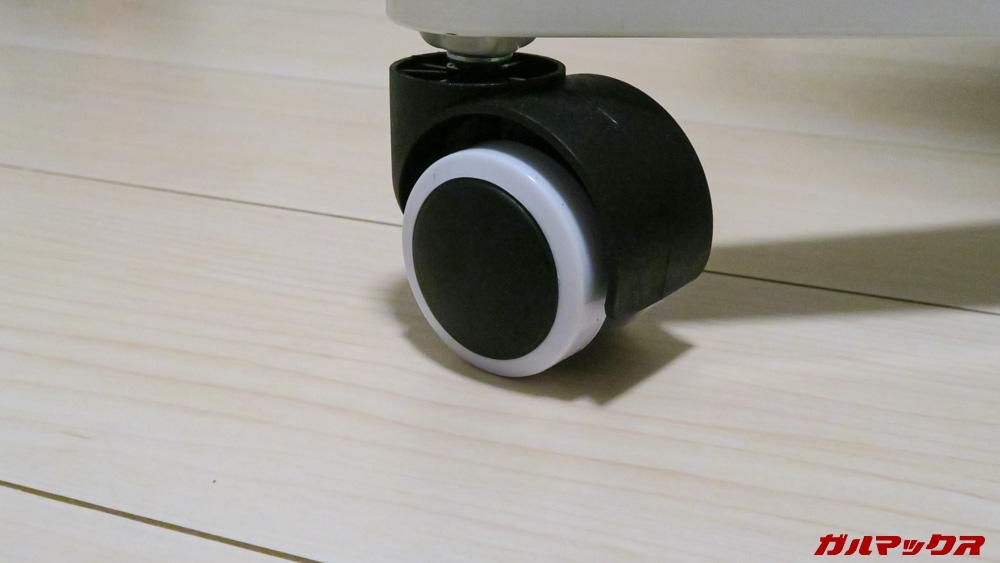 ▼足にくっついてるローラーは接地部分がゴム製なので、転がしたときの音もキズの心配もないのが嬉しい!ロック機能はないけど動かし始めが結構硬いので、早く漕いでも動くってことはなかったです。↓