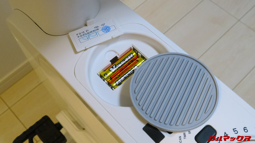 ▼デスクバイク V9はコンセントはなく電池で動くタイプで、単三電池2本を電池入れに突っ込むだけで電源が入ります。で、フタしてカップホルダーのラバーをかぶせれば準備OK!↓