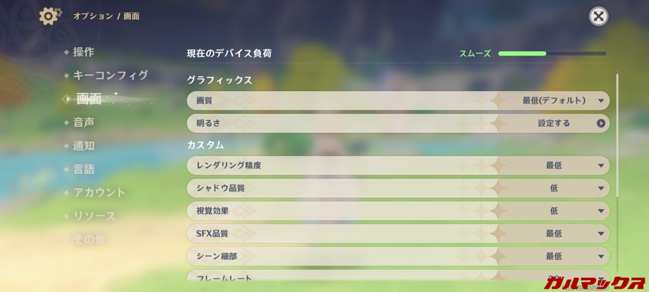 ▼グラフィックのデフォルト設定は「最低」となっていました。↓