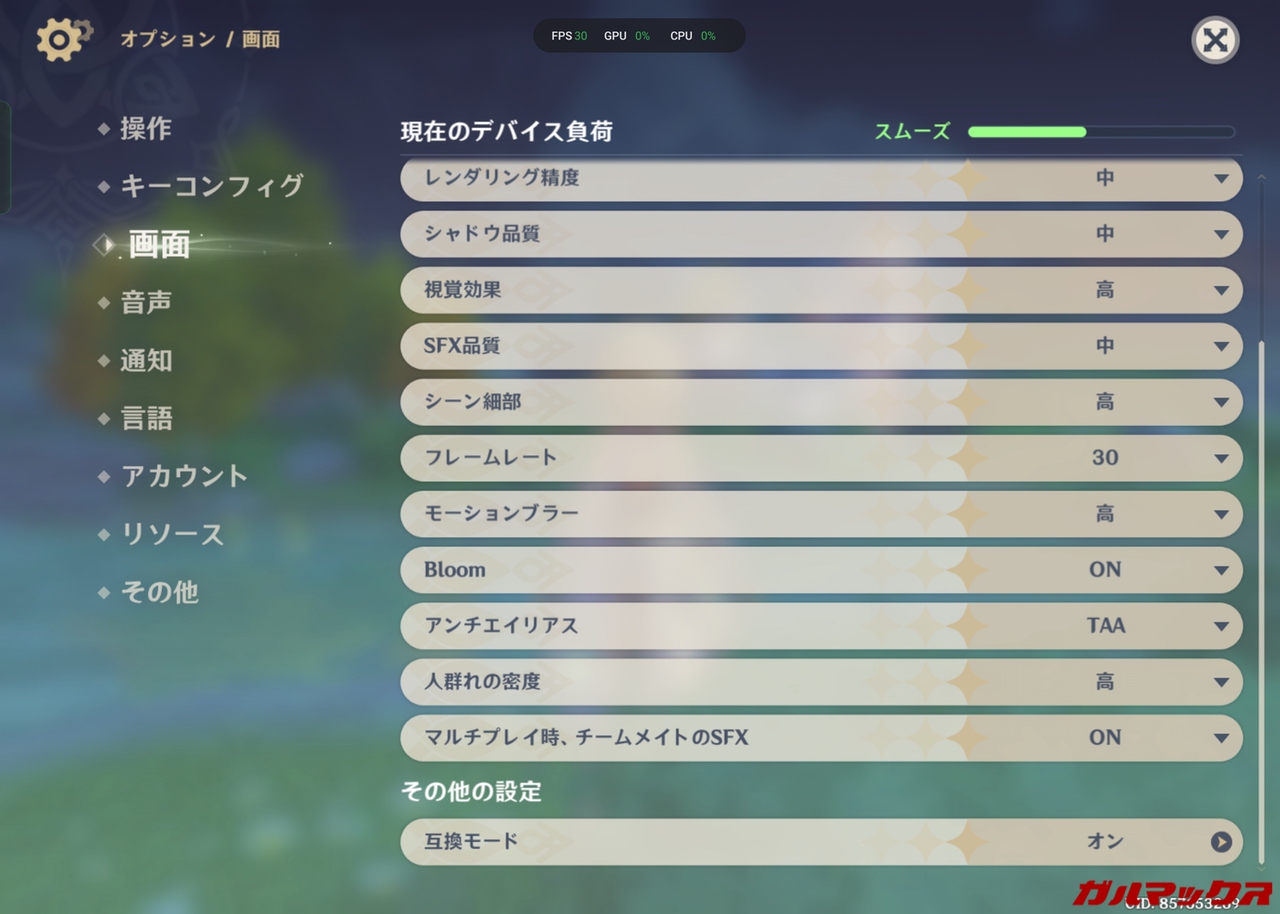 - 下限30FPS以上が出ていれば大多数のゲームは遊べるレベルで動作する。画質を妥協することで大多数のゲームは快適に動作する。