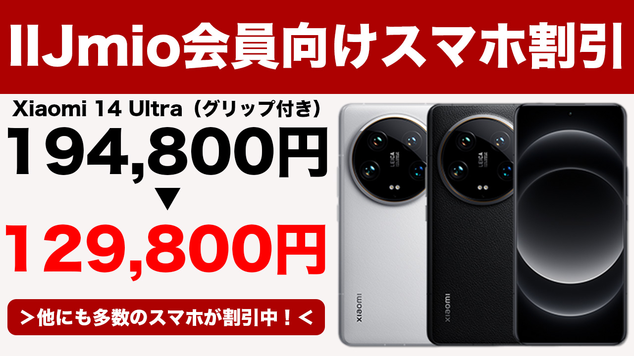 IIJmio会員向けスマホ割引が凄い。Xiaomi 14 Ultraが194,800円→129,800円など