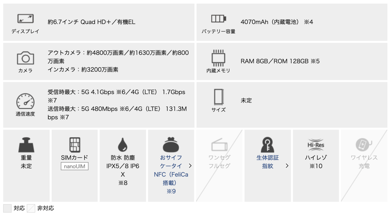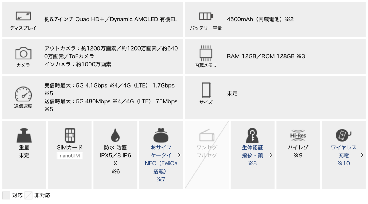 - 発売予定日:2020年3月25日(5Gサービス開始と同時発売)