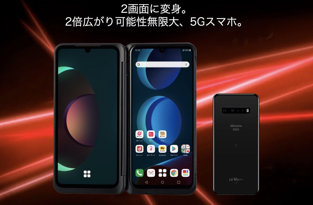 LGの「LG V60 ThinQ 5G L-51A」はSnapdragon 865、メモリ8GB、容量128GBのフラッグシップハイエンドモデルでデュアルディスプレイを搭載するユニークなモデルです。付属するケース型のサブディスプレイユニットを利用することで6.8インチ(有機EL)×2のデュアルディスプレイが利用できます。カメラは通常カメラ以外に広範囲を撮影できる超広角カメラ、美しい背景ボケ写真の撮影をサポートするToFカメラを搭載しています。