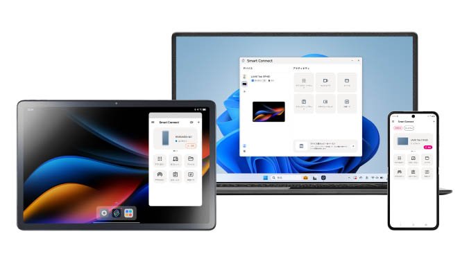 ▼Smart Connectを利用することで様々な連携機能が利用できます。Lenovoはこういうシステムが優秀です。例えばPCのセカンドディスプレイ化、スマホのミラーリング、スマホやPCとのワンタッチファイル共有など。↓
