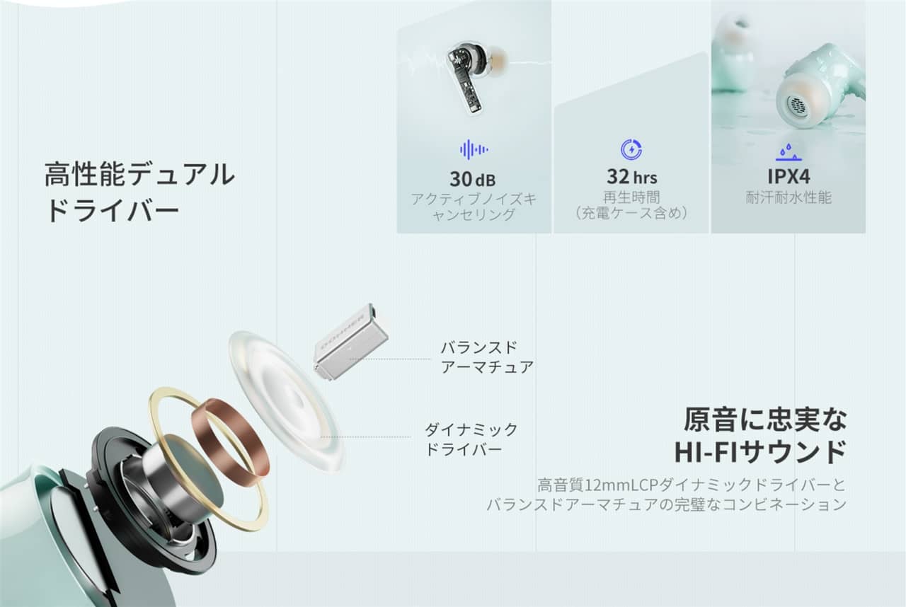アプリとタッチ操作、ANCによる機能性を兼ね備えつつ、さらに大口径ドライバを搭載した安価なワイヤレスイヤホン、っていう点では安くて万能で高コスパな予感…。