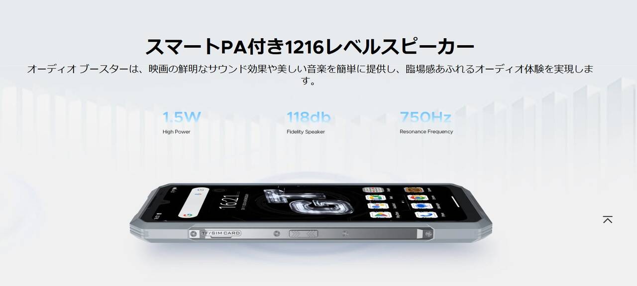 ▼スピーカーはデュアルかシングルかは不明ですが、最大118dBと大音量を鳴らせるタイプ!スマホ向けとしてはかなり高めなんで、大部屋とか野外で音楽、ラジオを流すに向いてそうですね。↓