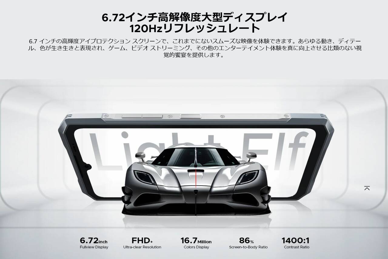 | ディスプレイ | サイズ:6.72インチ 材質:液晶 画面占有率:86% 形状:ノッチ(水滴) 最大リフレッシュレート:120Hz 最大タッチサンプリングレート:240Hz |