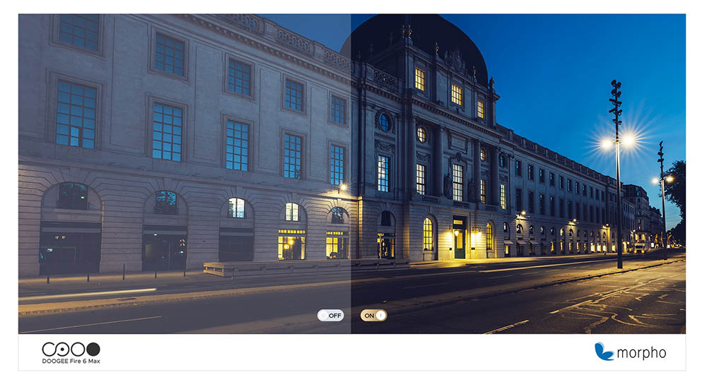 ▼Morphoの技術を採用したナイトモードやEISを搭載。2004年からある画像処理やAI技術に特化している企業らしい。XiaomiのLeica、OPPOのHasselbladなどのように透かしに協力企業のロゴが入るのは良き!↓