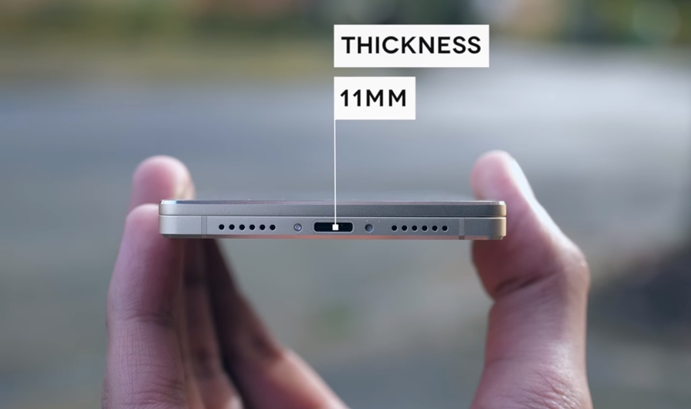 ▼本体の厚みは11mmで一般的なスマホよりは分厚い感じ。↓