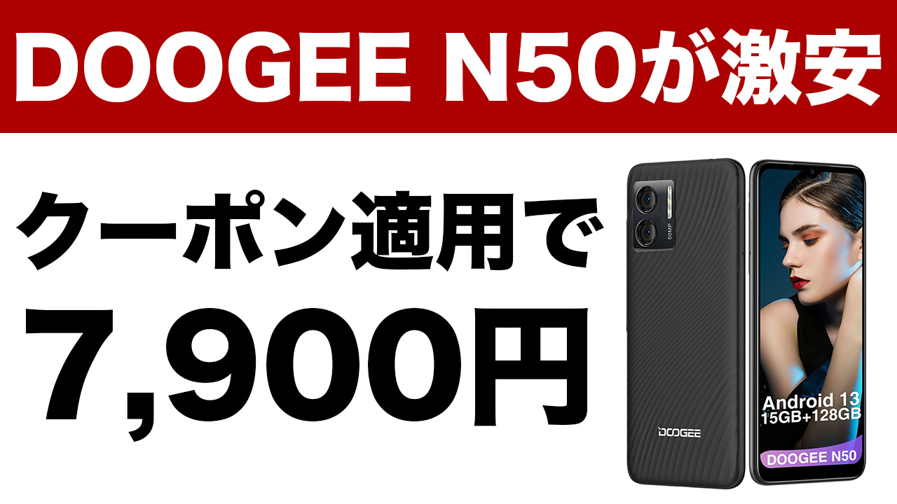 Unisoc T606搭載スマホ「DOOGEE N50」が7,900円。早いもの勝ち